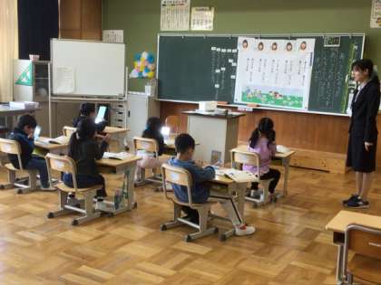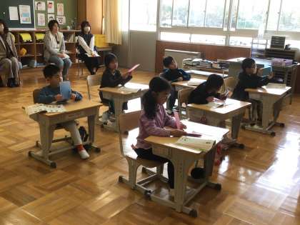 1年生は「あいうえおのうた」を、口の形に気をつけながら発音していました。おうちの方に見ていただくのを楽しみにしていました。