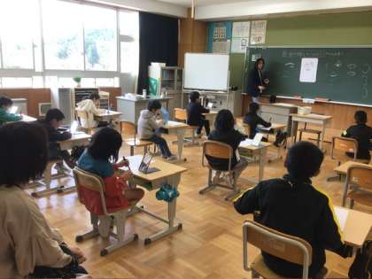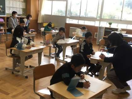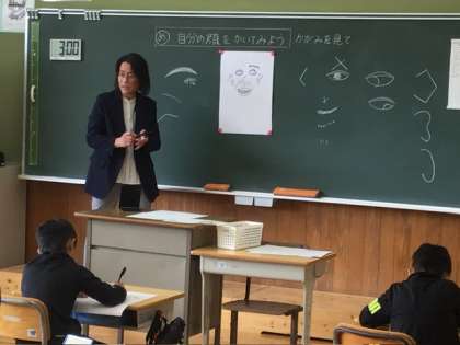 学校公開日3 公開日 2024/04/13 更新日 2024/04/13 学校行事 3、4年生は、図工「自分の顔をかいてみよう」を見ていただきました。 鏡で自分の顔の鼻や目のまつ毛など、細かいところまで確認して、丁寧に描いていました。初めて複式学級に入った新3年生も、元気に取り組んでいました。