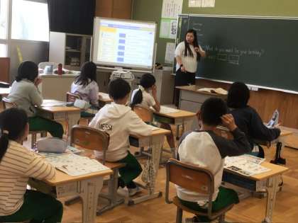 5、6年生の外国語科の授業は、今年からの新しい先生と一緒に学習していました。昨年度までの学習を生かして、外国語の楽しさを学んでいます。