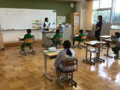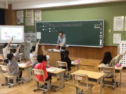 3年生の算数では、さすが上級生という姿が見られました。黒板の前に出て、自分でみんなに説明しています。こういうことを「みんなに聞こえる声で」「みんなにわかりやすく」気をつけることが、子どもたちの未来の力につながると考えています。