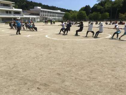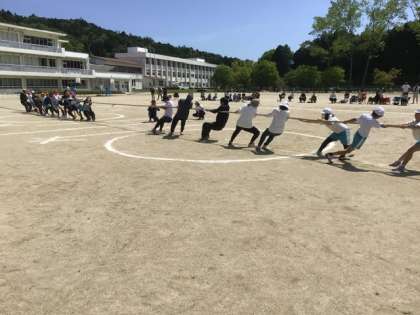 運動会 世界の果てまで綱を引っ張れ! 公開日 2024/05/11 更新日 2024/05/11 学校行事 高学年の親子競遊は、綱引きです。 保護者も力の見せどころとばかりに、心の中で闘志を燃やして参加いただけたのではないでしょうか。子どもたちとともに息を合わせて綱を引きます。卒業生も参加してくれて、応援の中学年、低学年の子どもたちが大喜びしました。作戦タイムもとりましたが、果たして作戦通り行くのでしょうか?頑張っています!