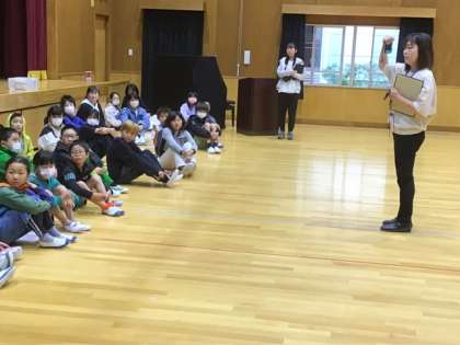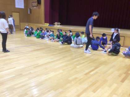今年度から、1か月に1回程度、朝の時間に集会をもちます。今日は「なかよし集会」です。高学年の担当の子が初めに「自分のことを話し、みんなの話も聞いて仲を深める集会です」と説明してくれました。