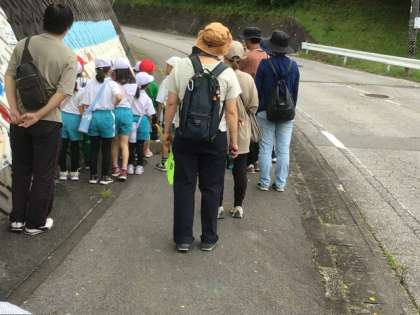 6月13日 1、2年生ささゆり学習 公開日 2024/06/13 更新日 2024/06/13 各学年から 今日は、1、2年生が、5月に続き2回目のささゆり学習に出かけました。校外学習引率ボランティアの保護者の方が4名、一緒に行ってくださいました。元気にあいさつして出発です。 5月に見たささゆりが、今月はきれいに咲いているという情報があり、楽しみです。