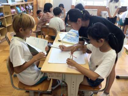 7月5日 今日の授業の様子2 公開日 2024/07/05 更新日 2024/07/05 各学年から 3、4年生の教室では、朝、クラスの子の誕生日をお祝いしていました。みんなで黒板に書いたメッセージがきっと嬉しかったと思います。 5、6年生は理科で「命のつながり」を学ぶため、ワークスペースでメダカを飼育しています。今日の授業では、メダカの卵が受精卵から胎児になる様子を、グループごとで図に表していました。