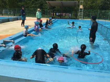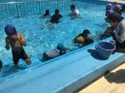 7月5日 今日の授業の様子3 公開日 2024/07/05 更新日 2024/07/05 各学年から 1、2年生のプールの様子です。 昨日から「初めてもぐれた」子が何人も出て、今日は顔を水につけて水中ジャンケンを楽しんだり、水の中の輪くぐりなどをしたり、昨日よりもっと積極的にできるようになりました。すごいですね! 今日のプールには、保護者の見守りボランティアさんが1名参加してくださいました。ありがとうございました。