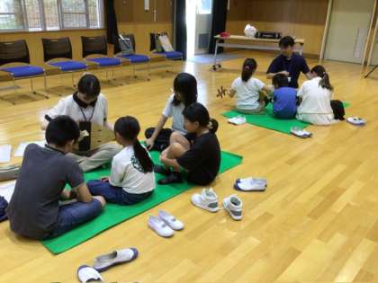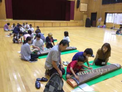 7月8日 雅楽 公開日 2024/07/08 更新日 2024/07/08 特色ある学校づくり推進事業 今日の雅楽は、いつもの楽器練習ではなく、楽箏と小琵琶(糸物)の全員体験です。3、4、5、6年生で少人数のグループを組んで、全員で糸物を体験しました。 糸物のいい音がホールのあちこちから聞こえます。所作を学んで、きれいに弾くことができる子も出てきました。