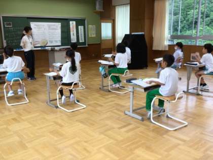 3、4年生は音楽で、手拍子でのリズムアンサンブルに取り組んでいました。CDの曲に合わせてリズムをみんなで合わせます。「初めてやるのに上手だね」と先生にほめられていました。