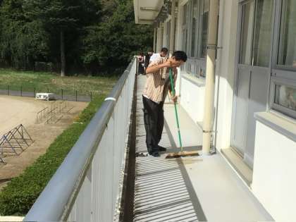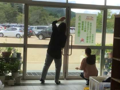 授業参観の後は、PTA作業で校舎の窓拭きやテラス掃除をしていただきました。