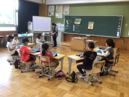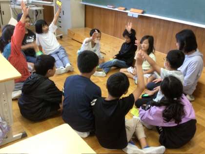 3、4年生は、新しい仲間を迎えたので、丸くなって自己紹介をしていました。「好きなお寿司のネタはえんがわです」「飼いたい動物はカワウソです」など、びっくりするようなエピソードもいろいろ聞けましたね。