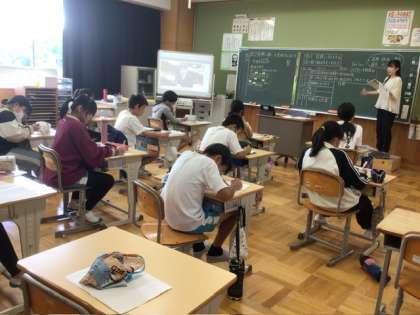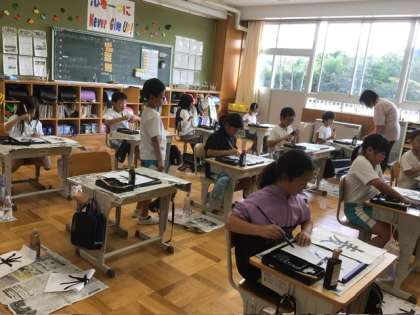3、4年生の教室では書写をしていました。静かに飼いています。「お手本をちゃんと見て書くんだよ」と先生の声が聞こえます。