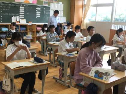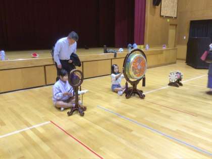 3、4年生は総合で、雅楽に取り組んでいました。教育長に楽太鼓を打っていただく場面もありました。やり方を教えてくれたみなさん、ありがとうございました。5、6年生は社会科の授業中でした。授業の様子、また教室の掲示物などをじっくり見ていかれました。元気なあいさつをする子が何人もいましたね。