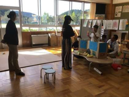 1年生は算数科「かたちづくり」です。三角形の色板を使い、子どもたちそれぞれに作った形を発表しました。たいよう学級は生活科「おみせやさんあそびをしよう」先生やお母さんなどのお客さん相手に、お店を開きました。2年生は国語科「主語とじゅつ語」ことばのきまりの基本となるところです。グループで主語やじゅつ語の問題を考えました。