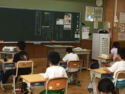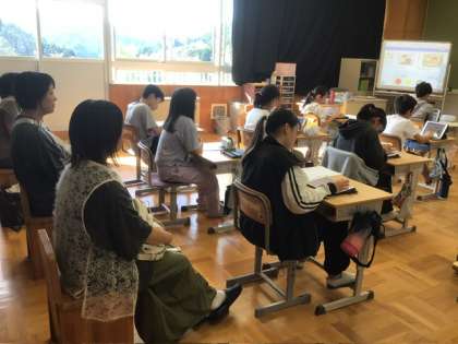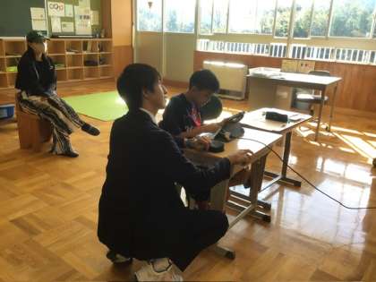 3、4年生は道徳科「ネットで知り合ったトモダチ」インターネットや携帯電話などで外とつながる便利さで隠れがちですが、ネットは相手の顔が見えないからこその怖さもあります。そこに焦点を当て、子どもたちに考えてもらいました。あおぞら学級は国語科「スピーチを作ろう」キャンプで頑張りたいことについて、タブレットを使ってスピーチ原稿を作りました。5、6年生は家庭科「朝食から健康な1日の生活を」栄養面を大事にした和食、洋食の朝食献立を考えていました。