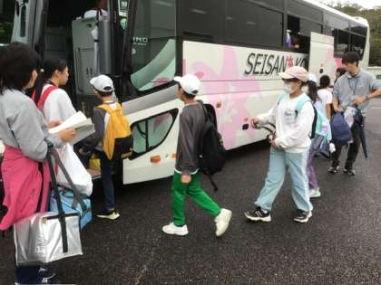 10月23日 キャンプ1 公開日 2024/10/23 更新日 2024/10/23 学校行事 今日から5年生は下山3校合同のキャンプに出かけます。天気が雨模様ですが、みんなはやる気いっぱいです。6年生と先生方の見送りを受け、元気に運転手さんにあいさつしてバスに乗り込みます。 行って来ます!
