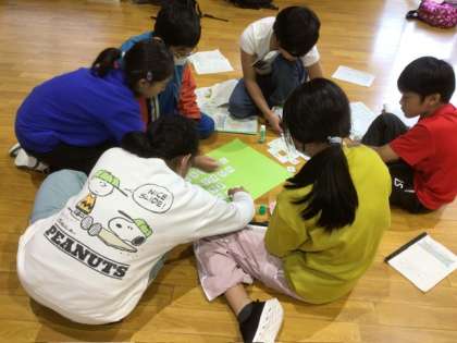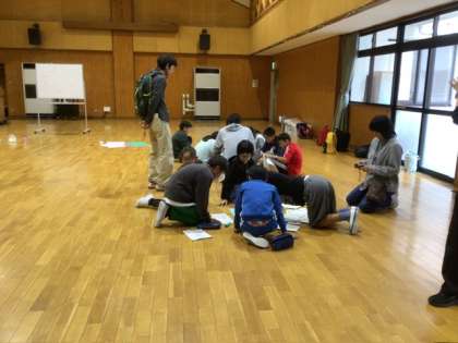 キャンプ3 公開日 2024/10/23 更新日 2024/10/23 学校行事 入室、シーツ受け取りを終えて、最初の活動は「顔合わせの活動」です。活動班に分かれて班のメンバーの名前を覚える活動をしながら、班の係をきめていきます。 初めはどの班も少し緊張気味でしたが、活動をしながら言葉を交わし、笑顔が見られるようになって来ました。
