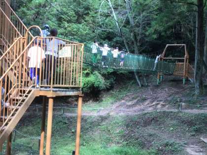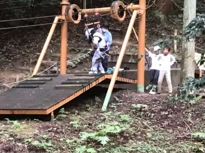 岩登りや一本橋(つり橋)、ロープウェイなどに挑戦しました。