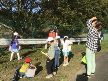 今日は朝から1年生が下山グラウンドへ校外学習に出かけました。生活科で、いろいろな秋を見つけに行きます。出発して学校の門をくぐらないうちから、立ち止まって落ち葉や木の実などの秋を見つけてメモしていました。下山にはたくさんの秋の姿がありそうです。