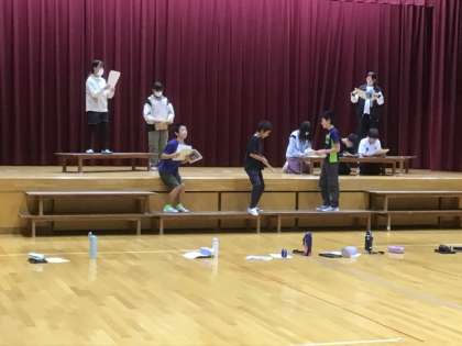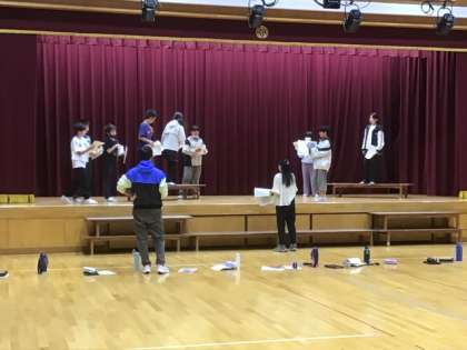 5、6年生が学芸会練習をホールでやっていました。立ち位置を確認しながら進めていました。昨年の5、6年生の劇は「セリフのないところも演技している」と下級生がびっくりしていましたね。今年はどんな作品になるのかな、と楽しみです。