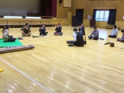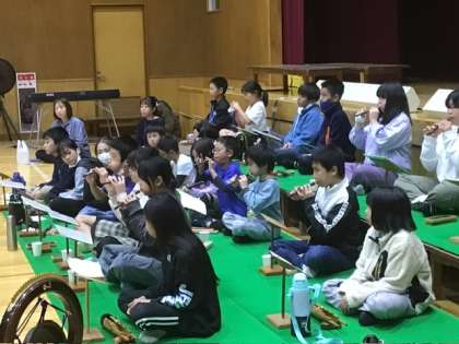 学芸会まで、外部講師の先生が来てくださるのは3回です。今日はそのうちの2回目でした。少し寒くなったホールの中で、呼吸をするところから最初の一音を出す合わせ練習を、楽器ごとに何度も行いました。雅楽は指揮者がいないので、自分たちで周りの様子に気を配りながら合わせようとすることが大事です。みんなの力でずいぶん音の出始めが合うようになり、かっこよく聞こえていました。