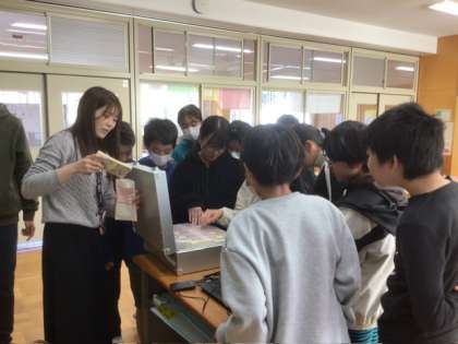 今日は、子どもたちの身近な道路や救急車などの公的なものから学校のことまで話をしてくださいました。特に、学校を建てるために16億円かかると聞いて、子どもたちからはエーッと驚きの声が上がっていました。写真は、この16億円の重みを感じているところです。用意してくださった銀のケースには、16億円分の一万円札がきれいに詰めてありました。持ち上げてみる?との講師の先生の言葉に、何人かがチャレンジ。「重たい!」と持ち上げている顔が真剣です。税金の重みを知りました。