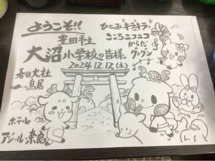 貸切のお部屋を用意していただき、一人一人のお膳の下に敷いた紙には歓迎のメッセージがあって、思わず「わあ!」と声が上がります。朝早かったので、お腹がすいていましたね。