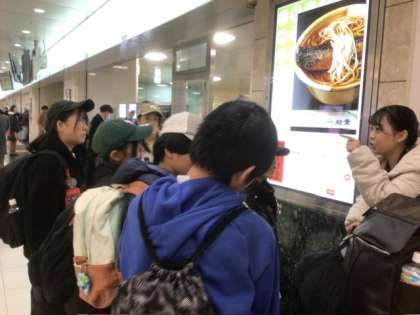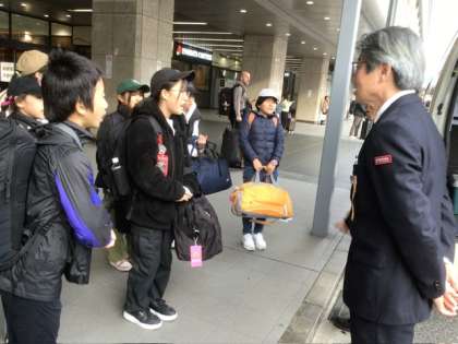 京都駅で、今日お世話になった貸切タクシーの運転手さんお二人にお礼のあいさつをし、お別れしました。今日の訪問先では、丁寧な説明やスムーズな誘導をしていただきました。おかげで、みんな楽しく過ごせたと思います。ありがとうございました。