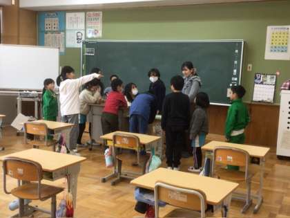 給食後には、通学団会を行いました。日頃の並び方やあいさつなどを振り返りました。並び順を見直す班もあり、どこも高学年が班長として仕切っていました。それを見ている低・中学年の子たちにもいいお手本になっていると思います。