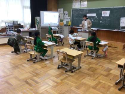 1年生は算数の勉強です。先生の言葉によく反応しています。