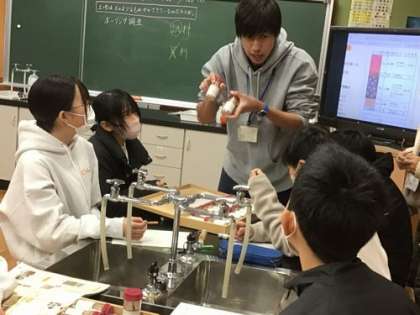 5、6年生は理科で土地のつくりと変化の学習です。ボーリング調査で得た土のサンプルをもとに学習を進めていました。それにしても、先生の説明を聞くときのみんなの集中力、すごかったです。