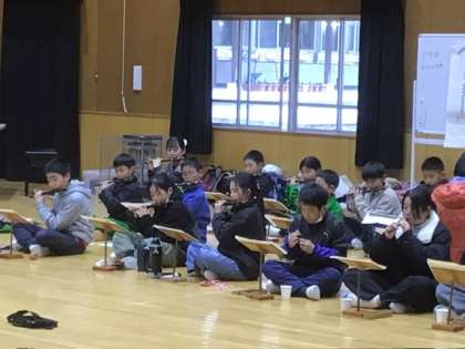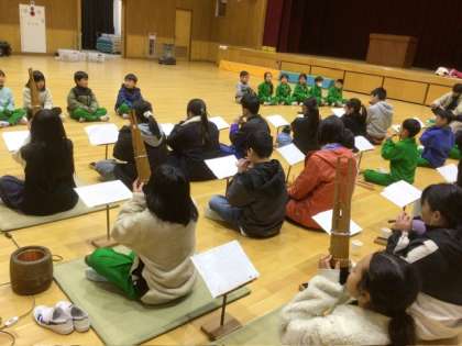 1月27日 雅楽練習 公開日 2025/01/27 更新日 2025/01/27 特色ある学校づくり推進事業 今日は雅楽練習で、来月予定されているボランティアさんたちへの感謝の会で披露する曲の練習をしました。1、2年生は歌で参加してくれますが、ずいぶん上手になったなあと感じます。3年生から6年生も、雅楽の演奏を頑張ります! 今日は、講師さんと、ボランティアさんが3名、合計4名の地域の方が練習に参加してくださいました。ありがとうございました。
