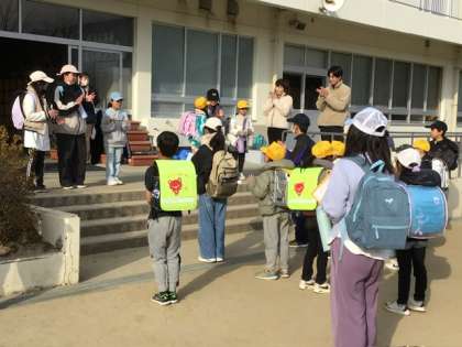 各学級の帰りの会で「今日の思いやり賞」として友達のすてきな行動を発表します。思いやりのある友達の行動を発表した人の中から、下校集会で学級代表として発表する人を決め、全校のみんなにも「こんなすてきな行動があった」と知ってもらう、というものです。