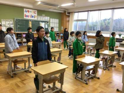 3、4年生の教室に行ってみると、卒業式の歌の練習をしていました。感情を高ぶらせて歌っている子もいます。気持ちを込めていい卒業式にしたいですね。