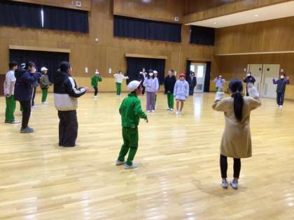 4時間目、ホールに3年から6年まで集合し、みんなで円になってゲームをしていました。卒業まであと10日あまり。6年生との時間を楽しめたでしょうか。