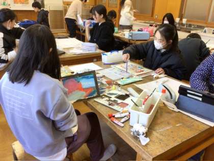 5、6年生は図工で「糸のこすいすい」という学習に取り組み、木の板でパズルを作っています。パズルの絵はそれぞれ自由に考えるのですが、6年生はほとんどの子が修学旅行の1シーンをパズルにしました。お寺、鹿、きれいだった紅葉、新幹線。本当に楽しい1泊2日だったんでしょうね。