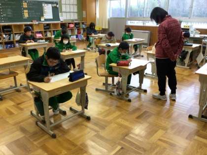 3月11日 授業の様子 公開日 2025/03/11 更新日 2025/03/11 各学年から 2年生が、明日の生活科「自分はっけん はっぴょう会」に向けて、練習していました。職員室の先生たちもお招きをいただいています。子どもたちの発表が楽しみです。 3、4年生の学級では、来年度に向けて自分の頑張りたいことを書いていました。「家庭科が始まるね」「先生は誰かな」など、思い思いにつぶやきながら書いていました。 早くも来週は卒業式の週です。月日の経つのは早いものだなと実感します。