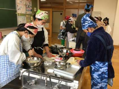 3月11日 5、6年家庭科 公開日 2025/03/11 更新日 2025/03/11 各学年から 思い出作りのひとつで、5、6年生がホットケーキを焼きました。トッピングは自由!ということで、みんなそれぞれ好きなものを用意してきたようです。バナナやイチゴをきれいに切っていました。 給食を食べた後でしたが、デザートは別腹みたいです。おいしく食べられたようですね。