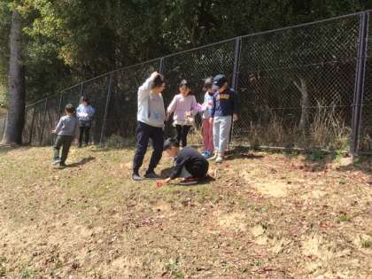 子どもたちは満開の桜をバックに写真を撮ったり、春見つけをしたり、帰る前に少し生み出した時間でドッジボールやサッカーをしたりしていました。
