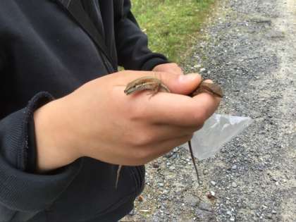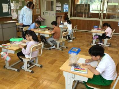 4月22日 1、2年生校外学習 公開日 2025/04/22 更新日 2025/04/22 各学年から 今日は曇り空です。昨日までの暑さは少し和らぎ、先生たちもほっと安心。1、2年生は生活科で春の植物や生き物をさがしに学校の近くの田んぼまで歩いて行きました。 わらびを見つけて袋に入れる子、カエルやカナヘビを見つける子、いろいろな春を楽しみました。 帰ってからの学習のまとめでは、つかまえてきた生き物をよく見て、真剣に絵にかく姿が見られました。