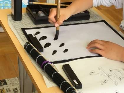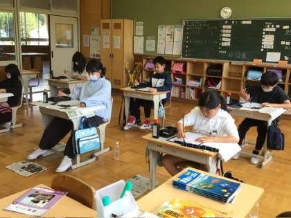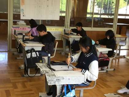 4月24日 授業の様子 公開日 2025/04/24 更新日 2025/04/24 各学年から 雨上がりの青空が広がりました。 5、6年生が書写の授業で、「道」という文字を書いていました。正確には、しんにょうの点をお手本通りに書くことから始めていました。微妙な筆運び、力の入れ方、墨の適正な量。細かく先生に教えてもらいながら「点」を何度も書くみんな。教室の静かな雰囲気がさすが高学年という感じでした。