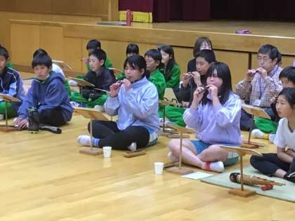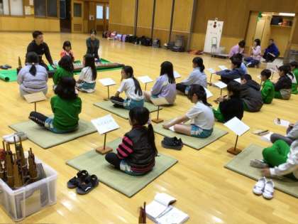 今様と息を合わせての唱歌を繰り返し練習してから、楽器の音を出しました。3年生はパートが決まってから初めての雅楽でしたが、自分のできることを一生懸命取り組んでいました。これからが楽しみです。