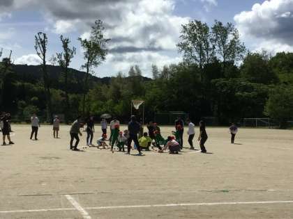 運動会3 公開日 2025/05/11 更新日 2025/05/11 学校行事 1、2、3年生の親子競遊 玉入れです。 子どもと親で力を合わせて玉入れをしました。保護者は大きな手を生かして、一度にたくさん入れられていましたね。僅差の勝負で赤が勝ちました。