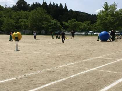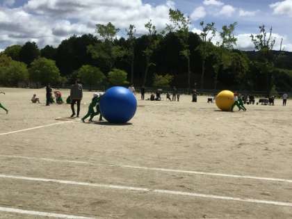 全校縦割り競技です。今年は大人の背より高い大玉を使います。