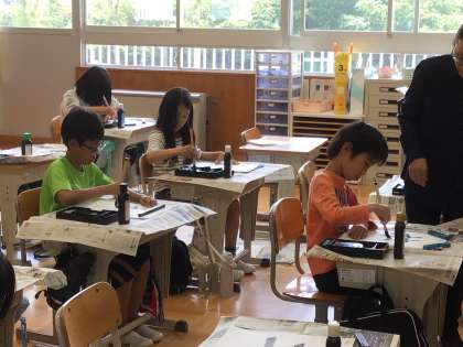 3、4年生の書写では、「筆を立てて書きましょう」と先生から何度も指示がありました。筆を立てると、書いている姿勢もよくなって見えます。