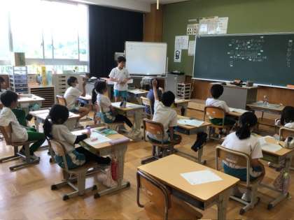 3、4年生は国語「メモをとりながら話を聞こう」を学習していました。誰でも話を全部メモにとることはできません。大事なことをいかに聞き取ってメモをするか、が大事ですね。話した内容について先生が問いかけたら、積極的に手が挙がっていました。