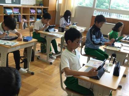 5、6年生は理科「人は体の中のどこでどのように酸素と二酸化炭素を出し入れするのだろう」について、学習用タブレットで調べ学習を進めていました。呼吸がカギをにぎっていそうです。調べ学習の結果はどうだったでしょうか。