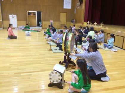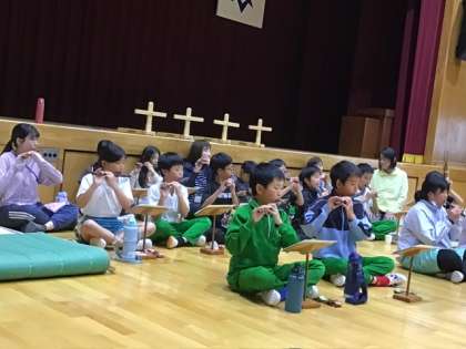 1、2年生も入って今様の歌唱から始まりました。3年生以上で管別の練習に入る時も先生から「唱歌をしてから楽器の練習に入るように」指示がありました。管別から合奏に入る時にも全員で唱歌。「みんなの速さをそろえるためにやるんだよ」と先生が教えてくださいました。合奏ではそろうところ、まだまだバラバラするところがありますが、これからも唱歌をしながら頑張って練習していきましょう。