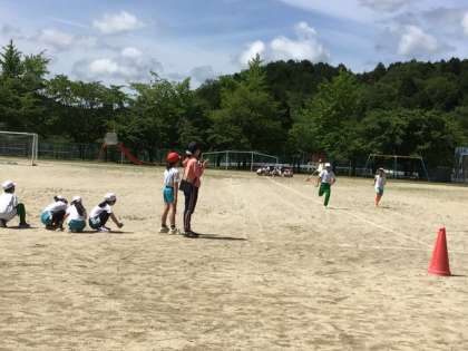 1年生から4年生は合同で50メートル走、ボール投げをしていました。久しぶりにいいコンディションで走れて、気持ちよかったですね。