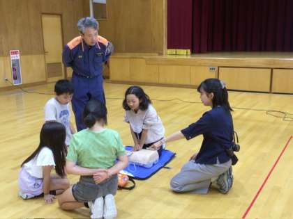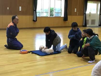 今日は、消防署の方が来校して5、6年生に応急手当講習をしてくださいました。