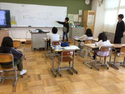 子どもたちのコミュニケーション力を高めるため、授業の中でも子どもたち同士が関わったり、自分で説明したりすることを大事にしています。