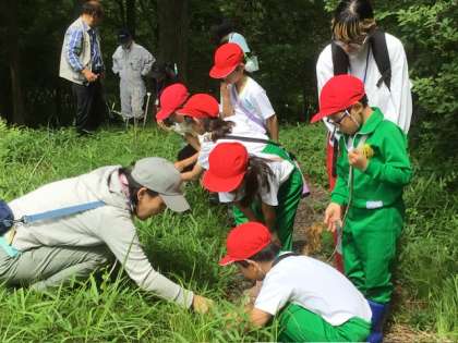今年のササユリは、春にシカに食べられてしまってほとんどダメになったと聞いて心配していましたが、今日に合わせたように、残ったササユリがいくつかのピンクの花を開かせていました。ササユリ保存会の方たちに詳しい説明を聞き、植えてから花が開くまでに7年から8年もかかると聞いて、子どもたちはササユリをいっそう大事に思ったようでした。今、中学校と小学校の間のところにも、つぼみが大きくなったササユリがあります。開くのを楽しみにしたいです。